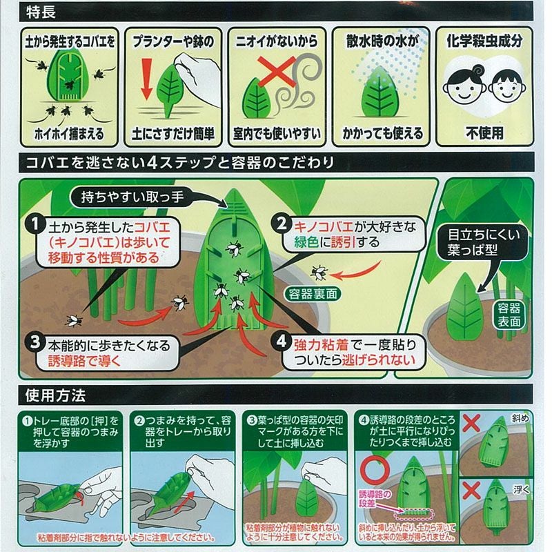 他の画像を見る 化学殺虫成分不使用!安心して使える♪ 土からわいたコバエに!挿すだけ簡単、粘着剤 価格 ¥ 900 税込 +説明 観葉植物のコバエ駆除はこれがおすすめ!「水につける」「外に出す」みたいな方法では再発生の可能性も。粘着剤で土から湧く小蠅も退治。全滅が期待できます。コバエがわかない土を求めるより簡単!