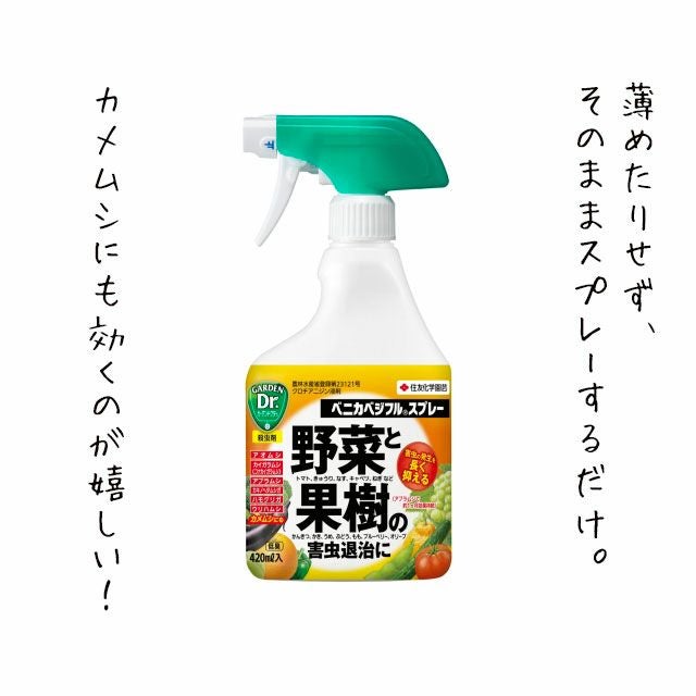 他の画像を見る アオムシだけでなく、カメムシにも効く! 野菜や果樹、オリーブの殺虫にはベニカベジフル420ml 価格 ¥ 594 税込 +説明 木酢液やハーブなどを使った防虫もオーガニックでいいですが、こちらの殺虫剤も成分が優しく人気があります。室内で殺虫剤の噴霧は控えたいという方に、一つのご提案。ハーブなどより確実な殺虫効果はあります