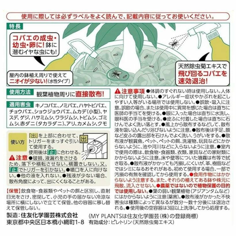 他の画像を見る コバエ、カイガラムシ、ハダニなどに! 虫のいない&虫がこない、美しい観葉植物に(殺虫剤) 価格 ¥ 928 税込 +説明 観葉植物の虫がわかない方法を考えるのも大切ですが、殺虫剤をもっておくのも重要。酢やハッカ油で手作りスプレーを作る方もいますが、薬品の方が効果は期待できます!カイガラムシの消毒、コバエにも!
