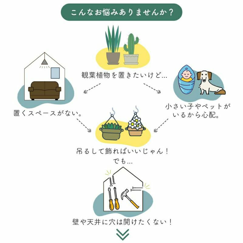 穴を開けずとも、植物が吊るせます!DRAW A LINEシリーズを使えば問題解決。
