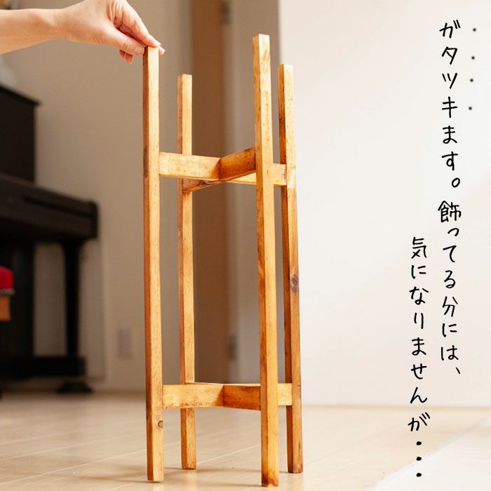 ガタツキがございます。 木は真っ直ぐというより、少し歪んでます。 木の色味は写真と異なる事もございます。 「精巧な木製家具」ではございません。お値段的なことも踏まえ、予めご理解の上お買い求め下さいませ。 |