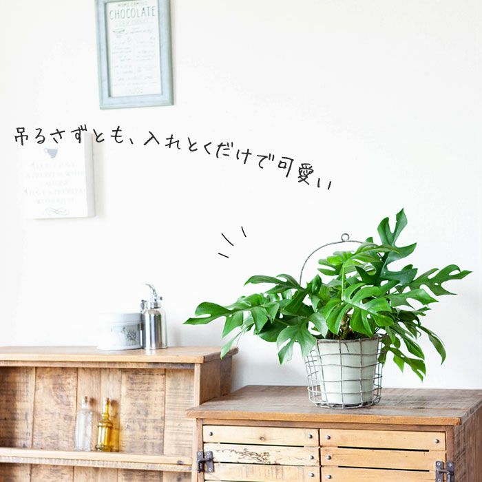 他の画像を見る ありそうで中々ない、大きめハンギングポット! ハンギングPOTカバー大(20cm) 価格 ¥ 2,475 税込 +説明 鉢植え植物を入れるだけ。シャビーなハンギングワイヤーバスケット。観葉植物を吊るす際、色々な方法・アイディアがあります。固定観念にとらわれず、いろいろ試してください。飾り方でインテリアが変わります!