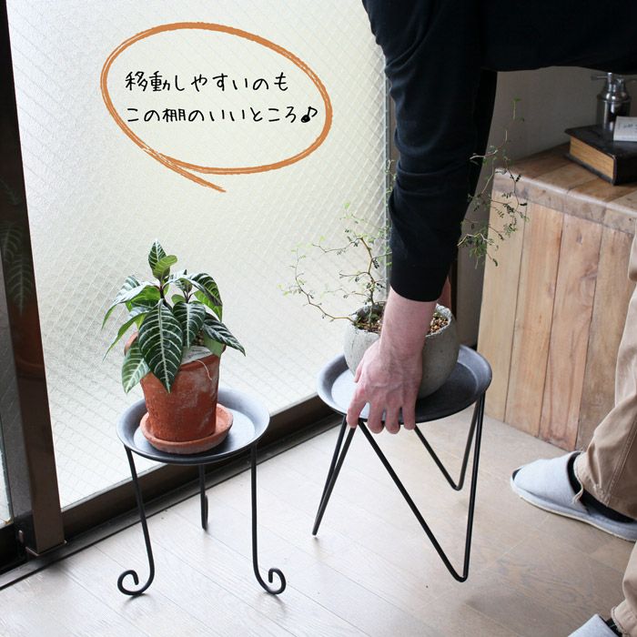 高さ:27cm 最大幅:28cm 皿の直径:26cm(内寸21.5cm) ※どの商品もアイアンスタンドと、アイアンプレート(皿)のSETになります。 (プレートとスタンドは、取外し可能です。) アイアンプレートは「受皿」としても利用可能です。 ただ植物毎に別途受皿を用意し、アイアンプレートは「台」として利用したほうが、綺麗な状態を維持できます。 |