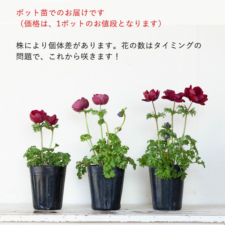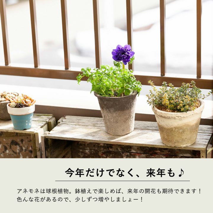 他の画像を見る 「これ、いいから試してみて!」と熱弁された、花市場お勧め品 2年生の球根アネモネ「極」2ポットSET(花色はお任せ。今は花が上がってませんが、これから咲きます) 価格 ¥ 1,430 税込 入荷待ち +説明2年生のアネモネ「極(きわみ)」。通常のポット苗は1年生球根なのですが、こちらは1年おいて肥大させたタイプ。花数が多く、鉢植え・花壇に向きます。花色はお任せ、他に八重咲きタイプなど取り扱いがあります
