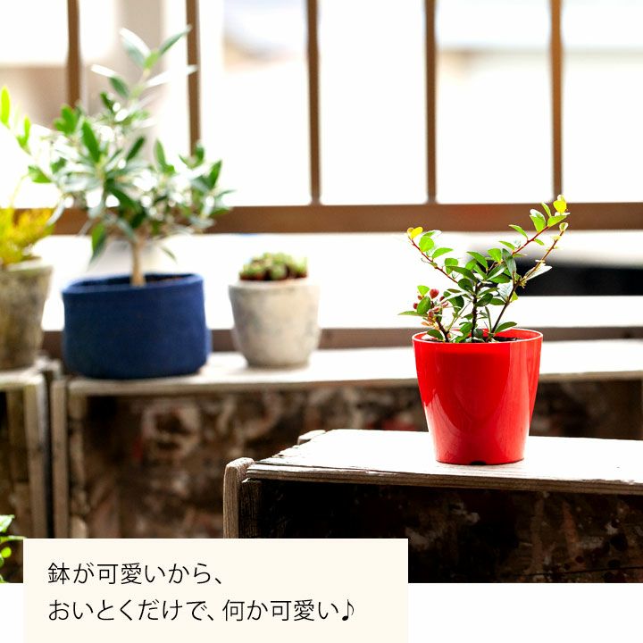 ※3号ポット苗が、赤いプラスチックの鉢カバーにストンと収まってます。半年~1年くらいは今の鉢のままでも大丈夫ですが、一回り大きい鉢に植え替えても大丈夫です。