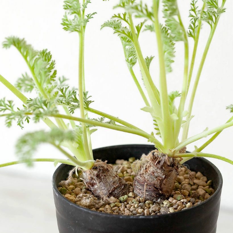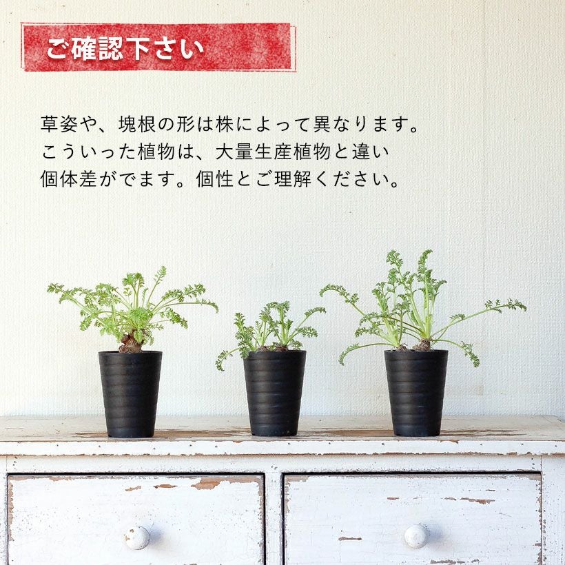 | 日当たりを好みます。 雨のかからない日当たりの良い軒下や、無加温のビニールハウスなどで管理します。 耐寒性について: 凍らない程度の寒さに耐えますが、強い北風には当てないで下さい。安全な越冬を望むなら、5℃以上の場所がお勧めです。 (寒冷地は冬は室内に。暖地であればベランダ軒下で、霜よけの不織布をかければ越冬できると思います) ※暑い時期(夏)には、葉が枯れて休眠に。そして秋になると再び新葉を伸ばして生育します。要は「夏に、葉がリセットされる」植物となります。 なので環境がよくなく、葉が多少徒長しても夏にはリセットされる・・・。そういった意味では、初心者さんでも挑戦しやすい塊根植物だと思います! 詳しいガイド、商品に同封させて頂きます! |