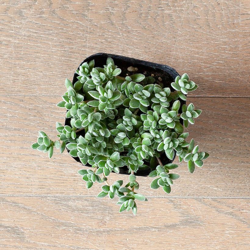 シックで大人っぽい葉色。しかしながら手に取ってみると、産毛におおわれ、赤ん坊のような可愛さがある。多肉なのでプリッとして可愛らしい。
