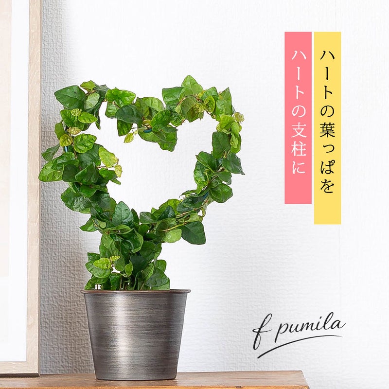 面白いプミラを見つけてきました!ハートの支柱に長いツルをクルクルッと巻きつけた、GREENリースの様なフィカス・プミラ。