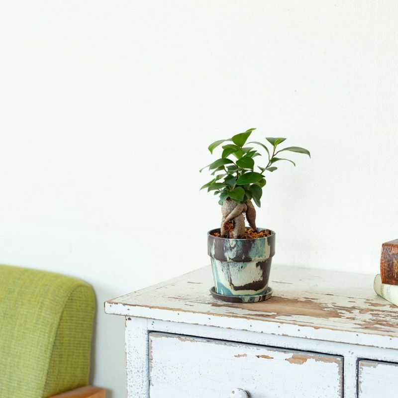 縁起樹である以外にも、「ビジュアルの可愛さ」「育てやすさ」などを兼ね揃えた、植物業界の優等生。どうせなら、ドレスアップした鉢で育ててみませんか?