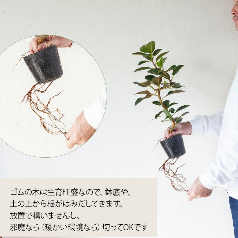 ゴムの木は観葉植物の中でも、育てやすいグループです。"初めての観葉植物"としてもお勧めです。 置き場所は室内の明るい場所に。多少であれば陰にも耐えます。また、伸びた枝をカット(剪定)することである程度は大きさをコントロールすることもできます。 |