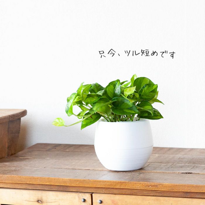 ※ボール型のプラスチックの鉢の中に3.5号のポトスエンジョイの苗がストンと収まってます。 ポトスは一般的な3.5号苗より時間をかけて、ボリュームがでるように作ったこだわり品です。