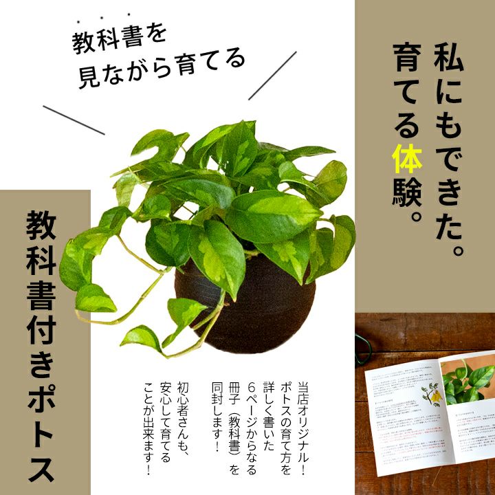 鬼に金棒!育てやすいポトスに、当店オリジナルのポトスの教科書(育て方冊子)もお付けします!