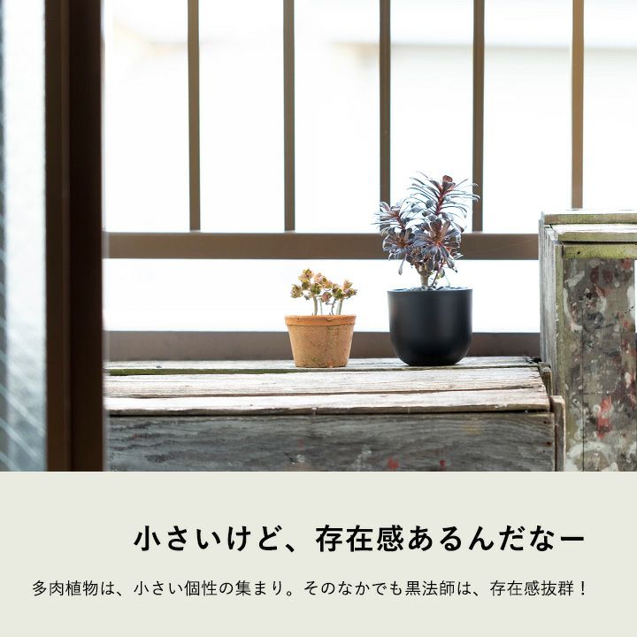 対し今回は、黒法師「ダークグレー」。葉色が良い黒法師を選抜し、丁寧に量産。多肉植物の名門農家・清水園のこだわり品種なんですよ!