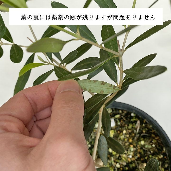 写真は見本です(オリーブの品種はお任せとなります)。 屋外の植物につき、葉には傷があります。特に今は春なので(冬越し後なので)葉の傷が多かったり、剪定した跡が目立ったりします。 ですがオリーブは春~夏にかけ、ぐんぐん成長します。新しい葉がでます。 なので現時点の葉の傷や、薬品の跡は一時だけのものとなります。気にする必要はありません。 |