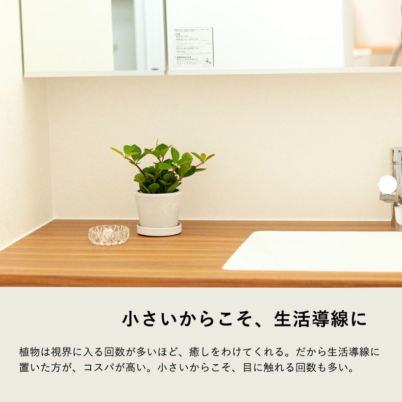 今回は「陶器鉢」ではなく、樹脂の鉢を採用しました。ミニ観葉って、サイズ的にも価格的にも「手軽さ」が大事と思うんです。なので価格はなるべく抑えたい。