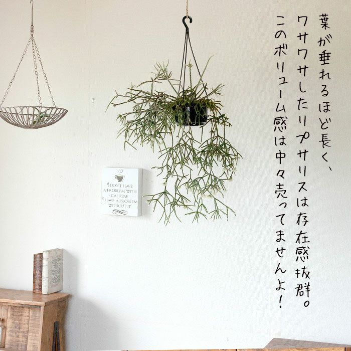 対しリプサリスは、葉が鉢を覆い隠すように生長。邪魔になるどころか、カッコよくなるのがいいところ。