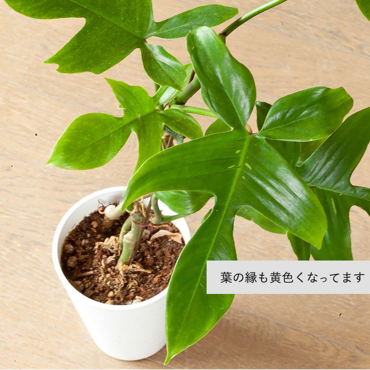 ただこういった傷んだ葉はいずれ切り落とすので、ご安心ください。この先、家庭で出た葉は傷みにくいと思います。育てる環境に順応した葉がある程度出てから、植え替えされるとよいと思います。