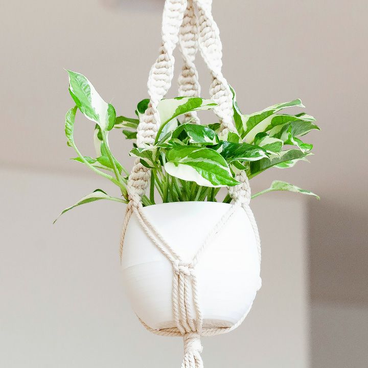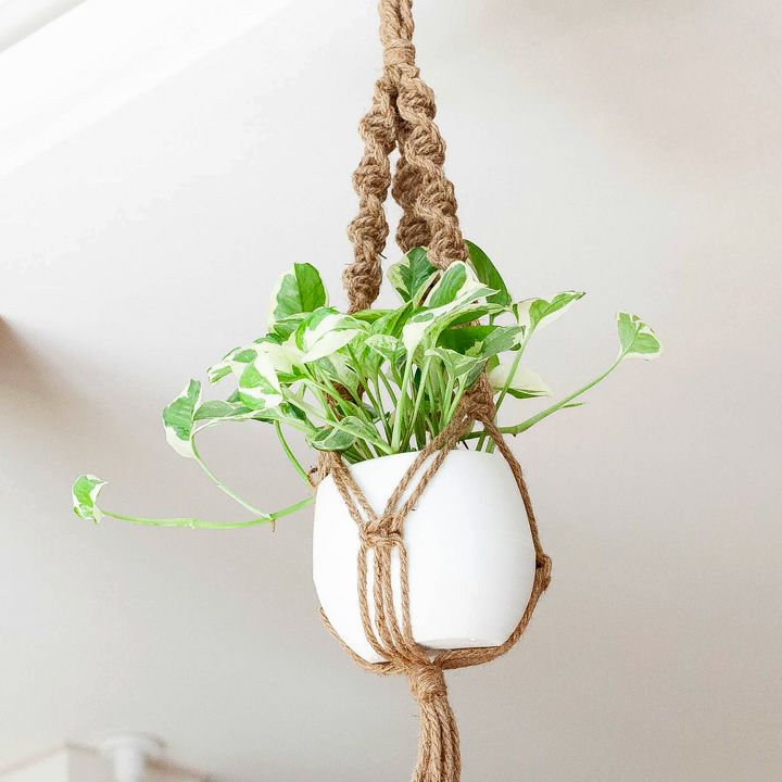 マクラメで吊り下げる、お洒落なポトス。迷彩模様、まるでビーサルプランツのようないでたちです!累計800鉢突破、初めての人でも育てやすいお勧めの観葉植物です。軽いから安心して飾っていただけます!