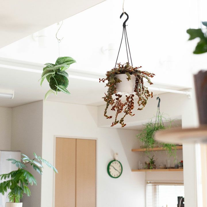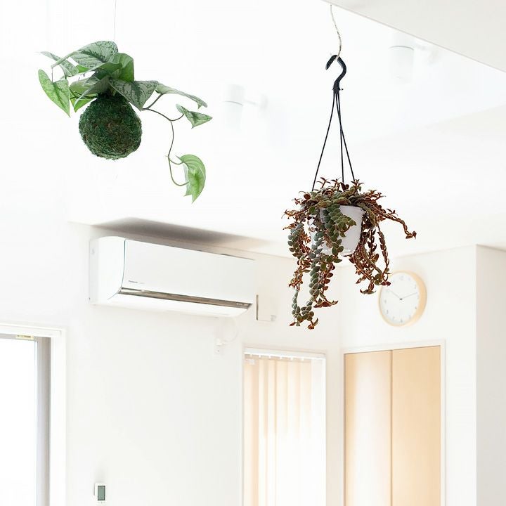 「吊るすの初めて!」という方には、苔玉タイプを推薦します。鉢を使ってないから軽量で、管理も簡単。比較的お求めやすいのが特徴です。
