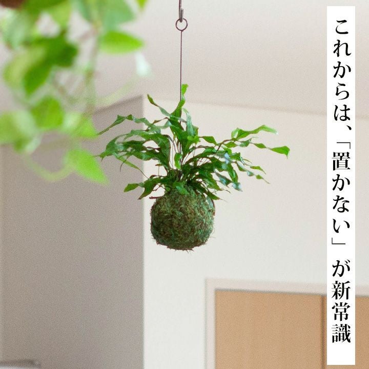 直射日光を避けた、室内の明るい場所に吊るして下さい。(観葉植物の中では陰に強い方です!) お水は6日~10日前後に1回くらいのペースでOK。容器に水をはり、お風呂に入れるようにドボンと苔玉を付けて給水させてください。 |