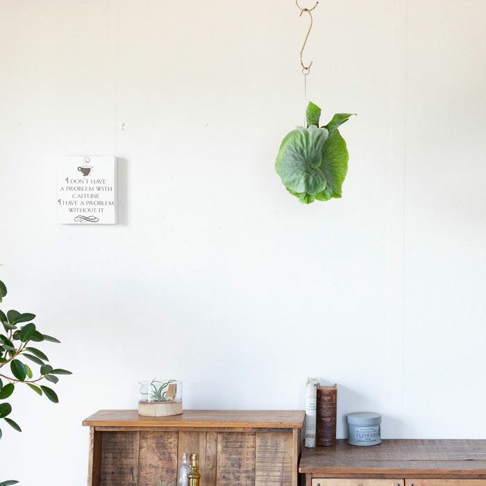 【水やりについて】 (置き場所によって異なりますが)おおよそ2週間に1度、洗面器に水をはり、苔玉を浸けます。お風呂に入れるようなイメージです。頻繁な世話は不要なので、忙しい人でも安心して育てられます。 【置き場所について】 室内の明るく風通しの良い場所で。ただある程度であれば、陰にも耐えます。吊り下げるか、鉢の上に載せてお楽しみください。 |