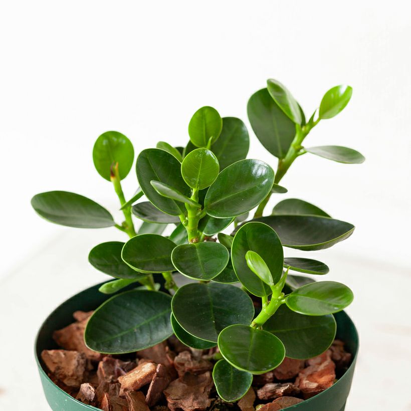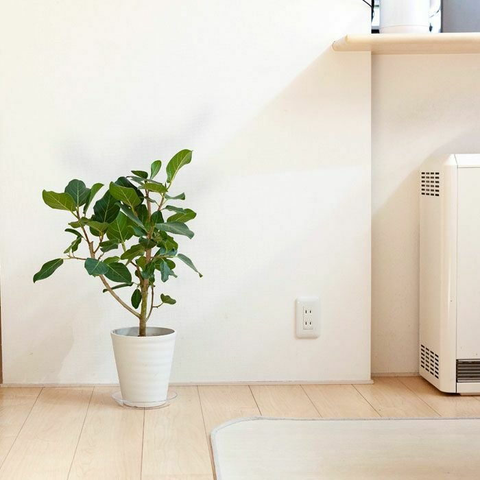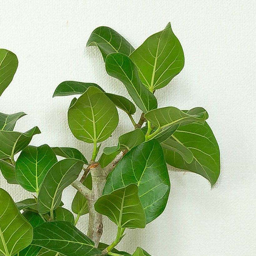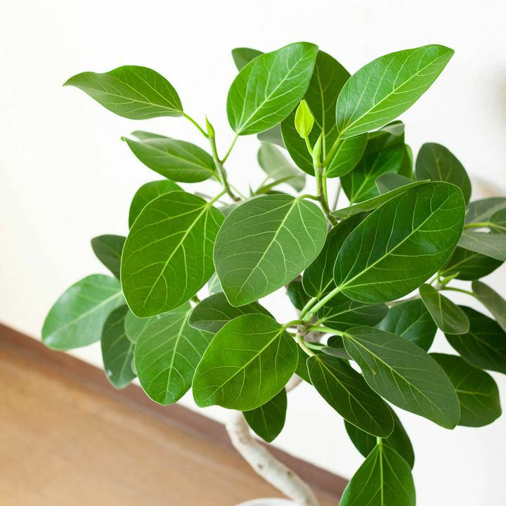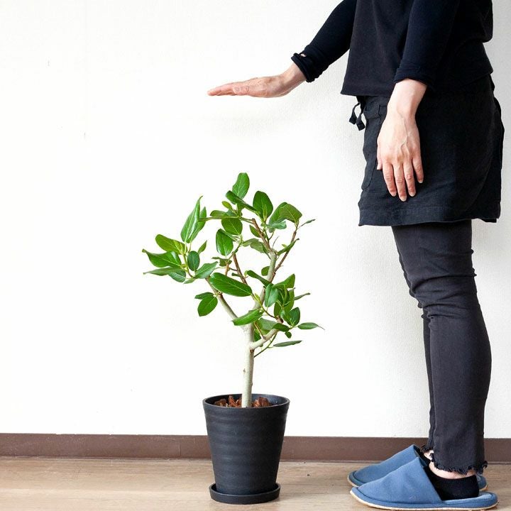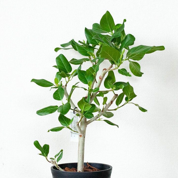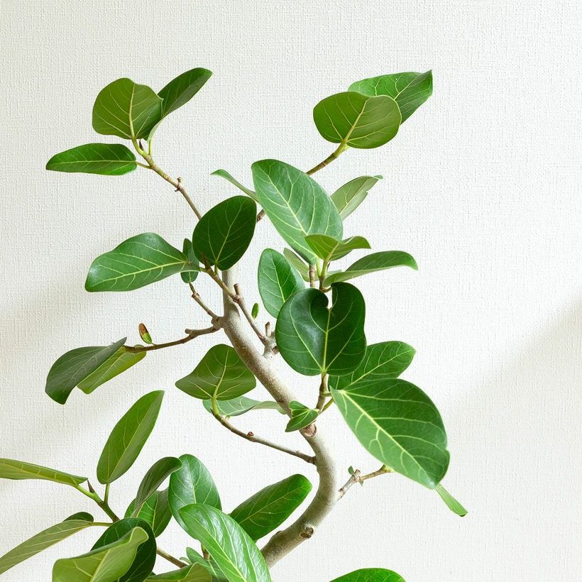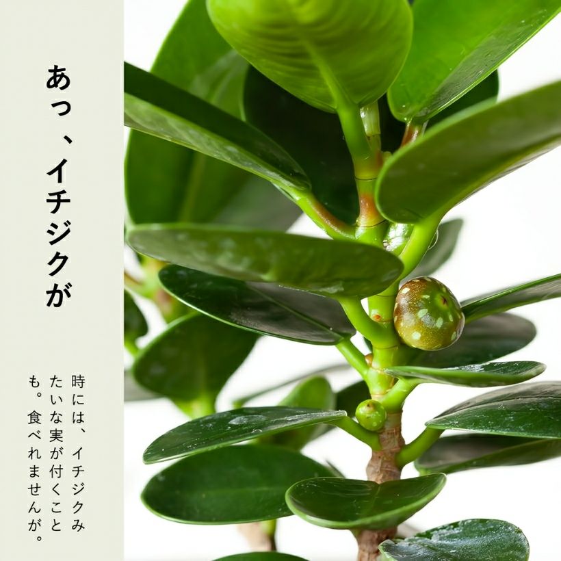 丸いフォルムの葉が、優しい雰囲気を与えてくれる品種です。食べられませんが、イチジクのような実をつけることがあります。
