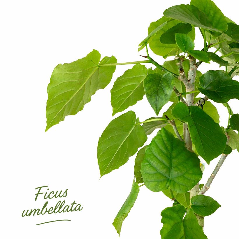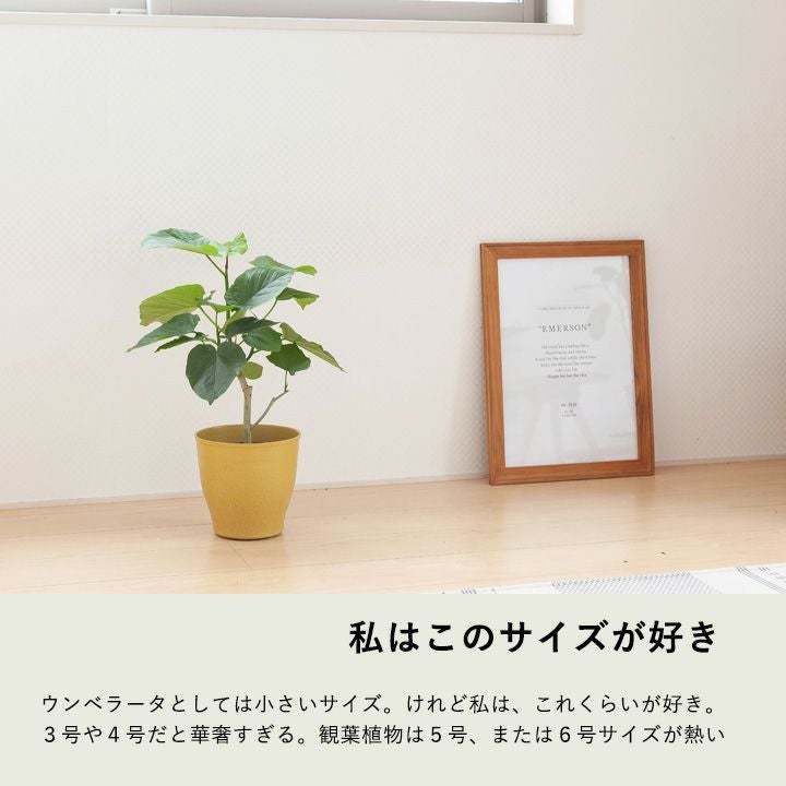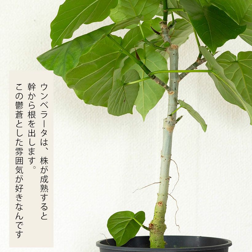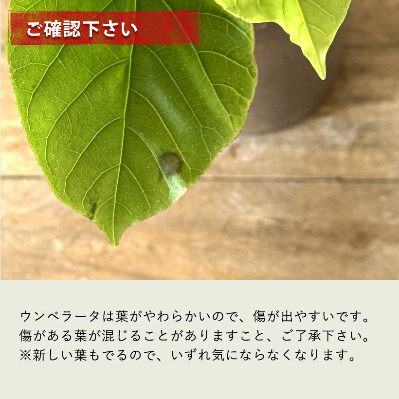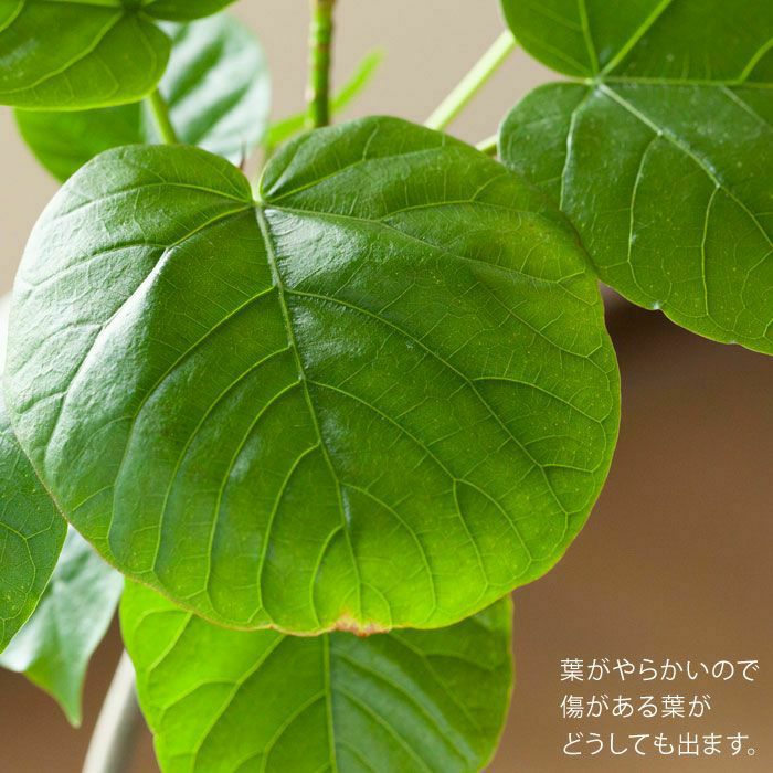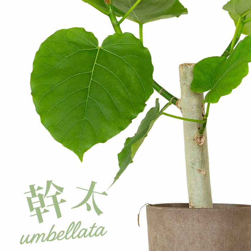 ウンベラータは、大きなハート型の葉が特徴。葉脈もきれいで、優しい印象があります。女性に特に人気。