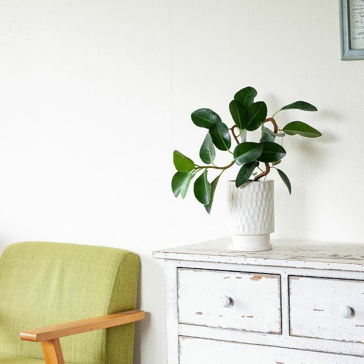 クネッ―と幹が曲がった、おしゃれなフランスゴム。床置きサイズだと1万円くらいしますが、こちらのタイプなら手軽に「曲がりグリーン」を楽しむことができます。鉢もお洒落!観葉植物でインテリアをグレードUPしませんか!