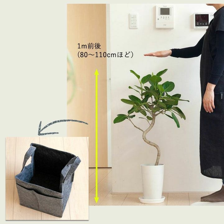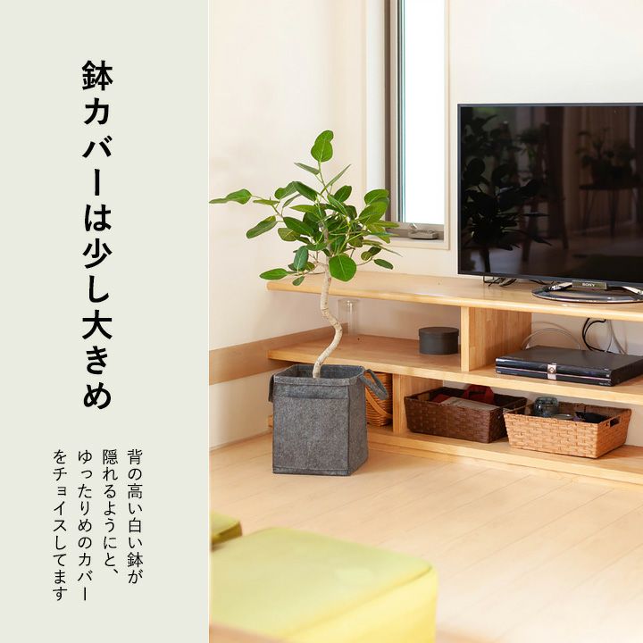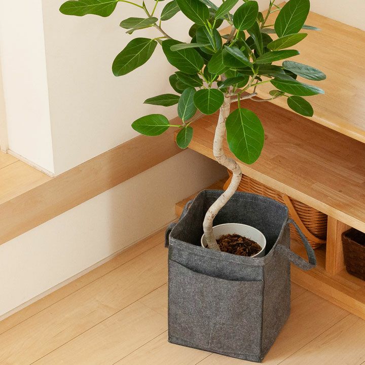 邪魔にならないサイズ感.。鉢もおしゃれ! 幹曲がりのフィカス・ベンガレンシス(鉢カバー付きtype)