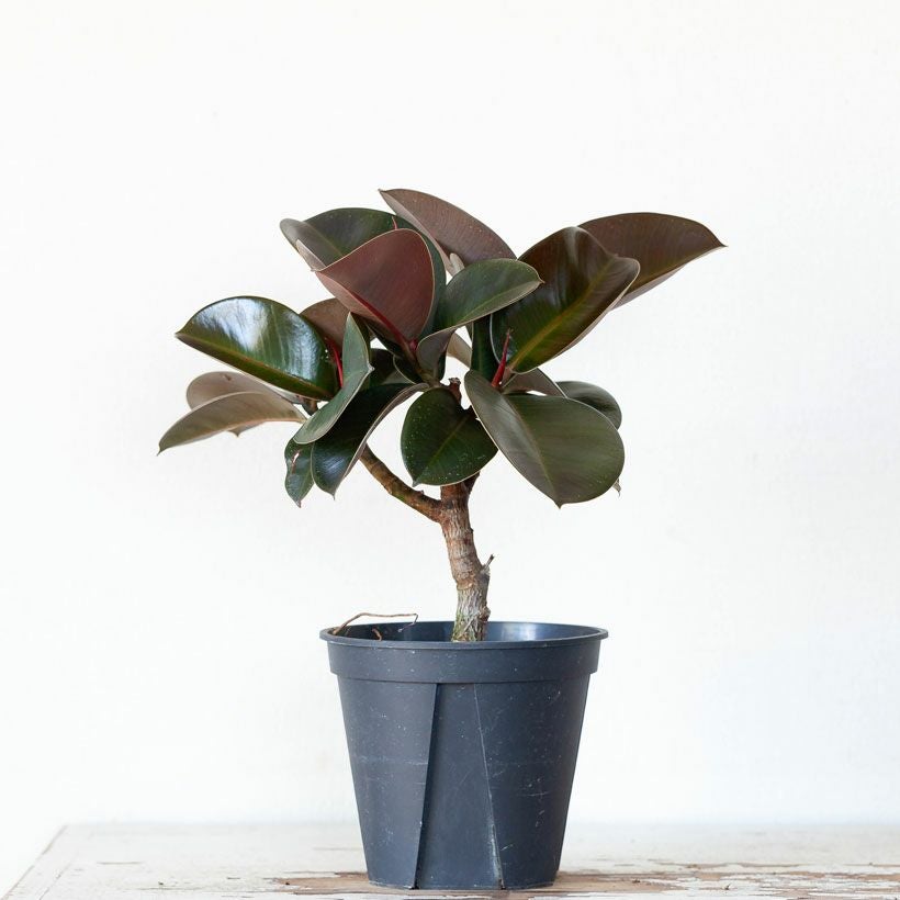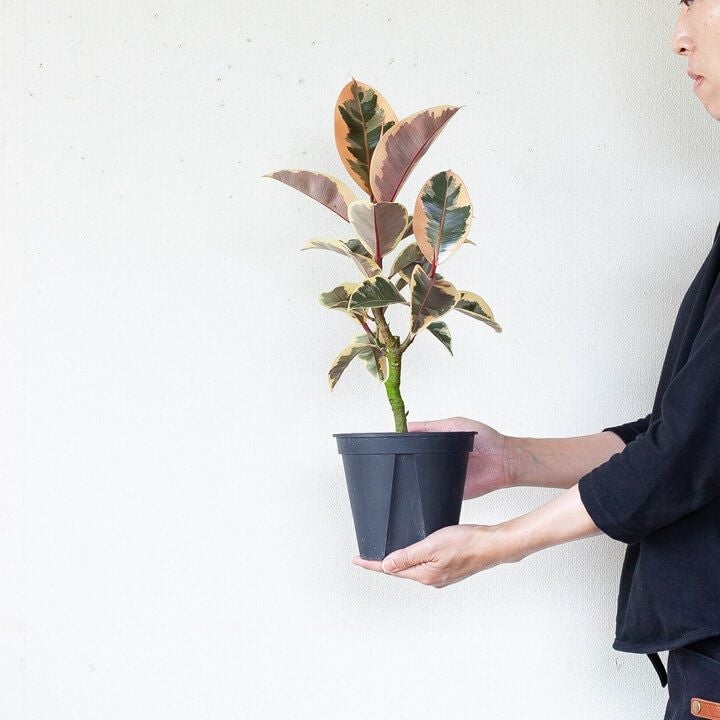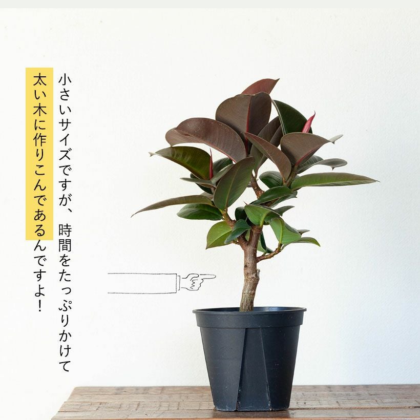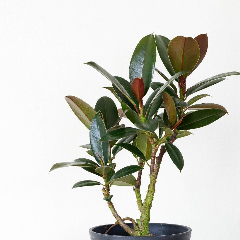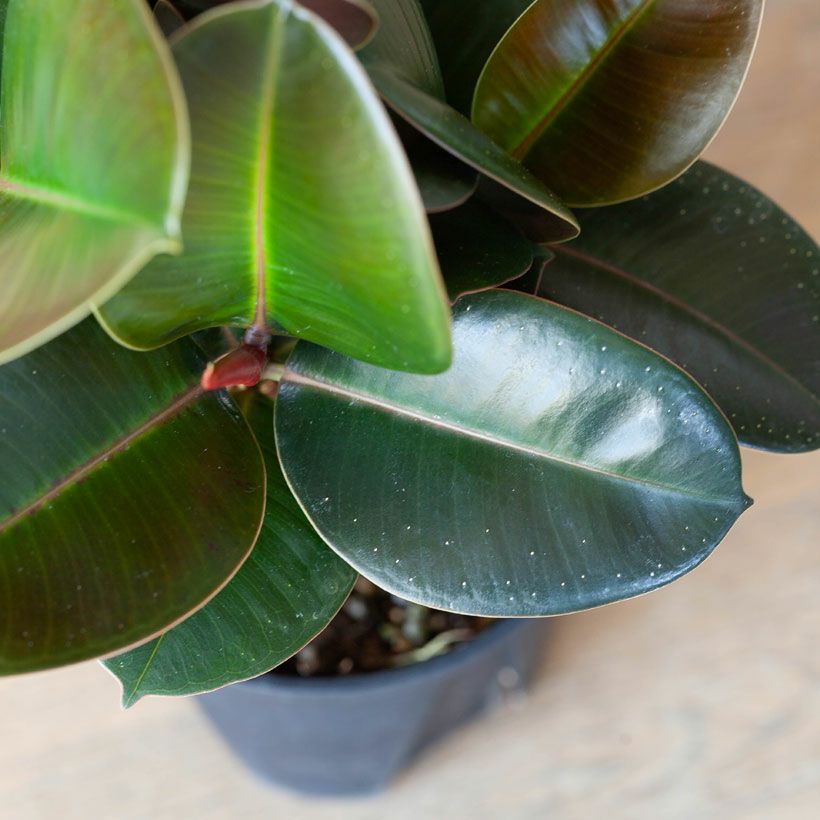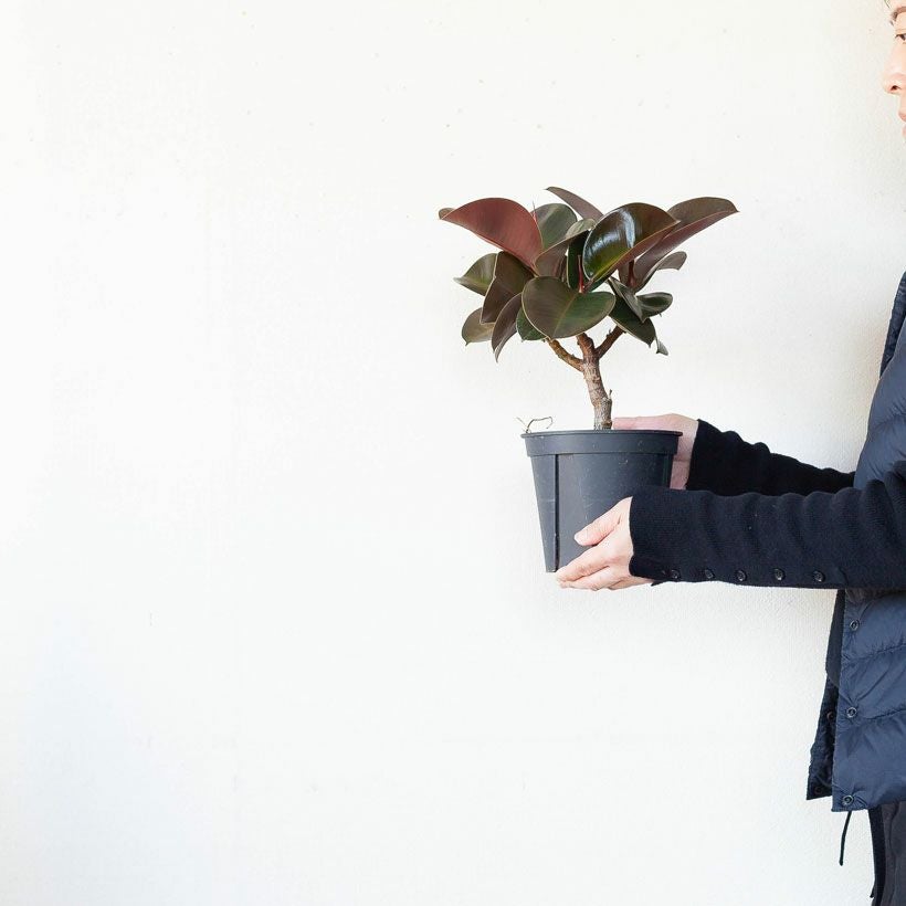 別名「クロゴム」と呼ばれる品種。葉の黒色と、新芽の赤色のコントラストが魅力の植物です。ゴムの木の仲間なので、管理もしやすく、初心者さんにもオススメですよ。