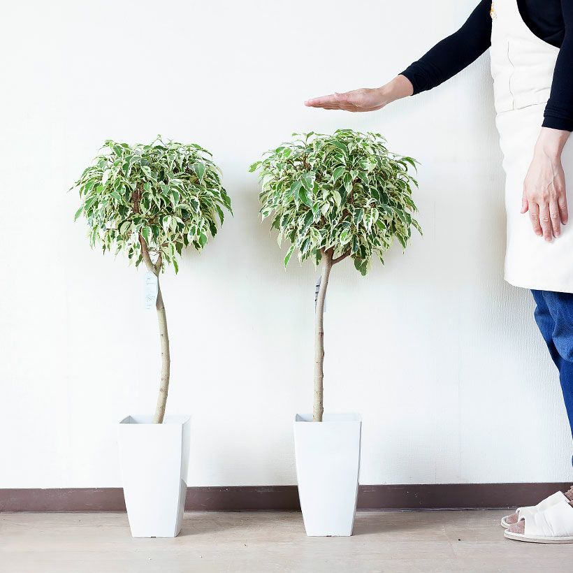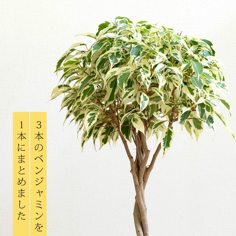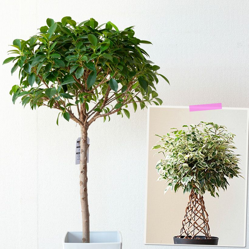 ベンジャミンは「斑入りの」と「鮮やかなグリーンの葉」があり、幹はやわらかいため「三つ編み」仕立てなどバリエーションが様々です。