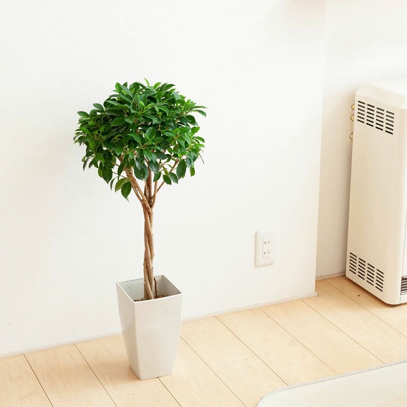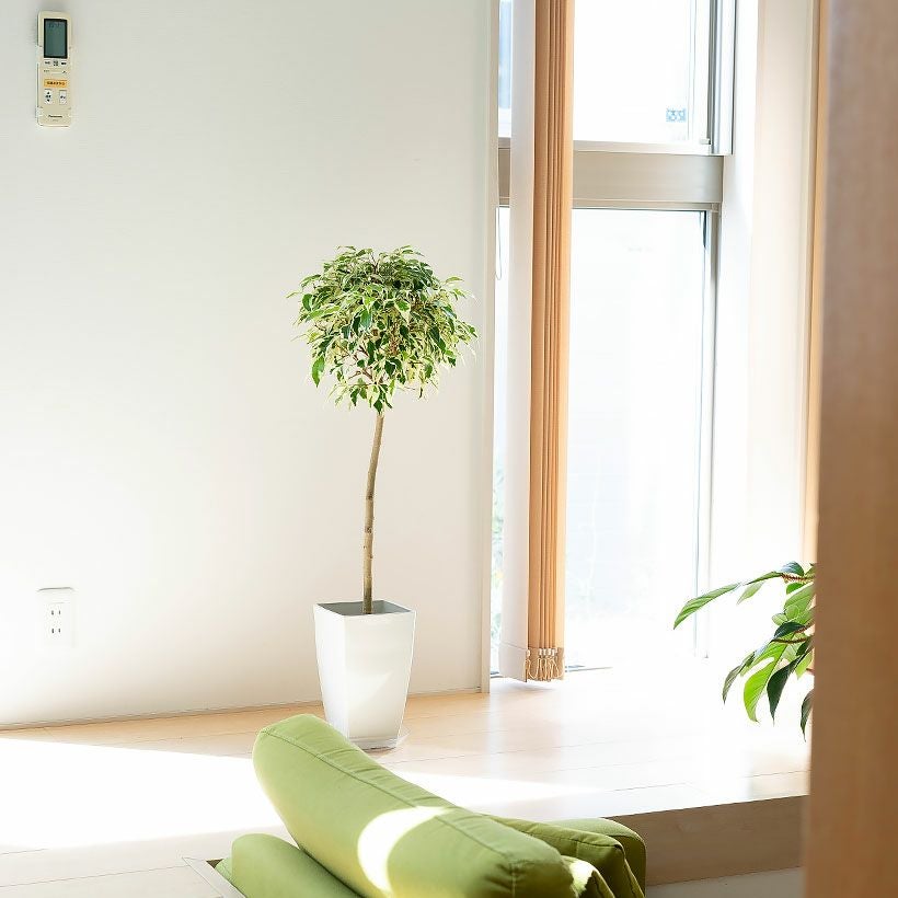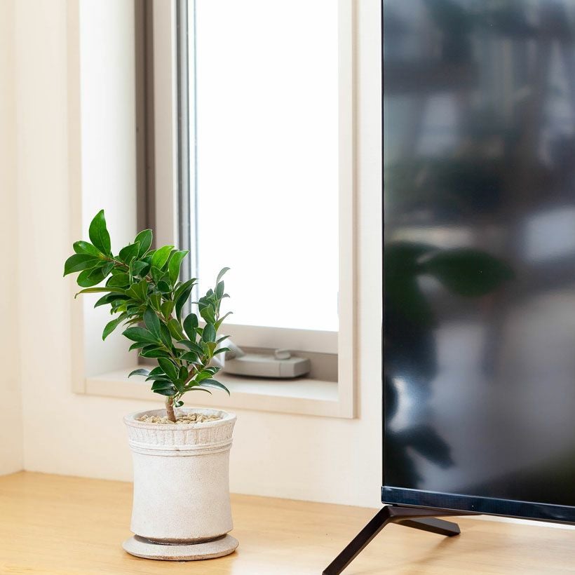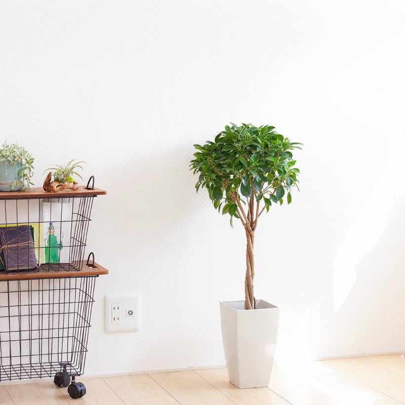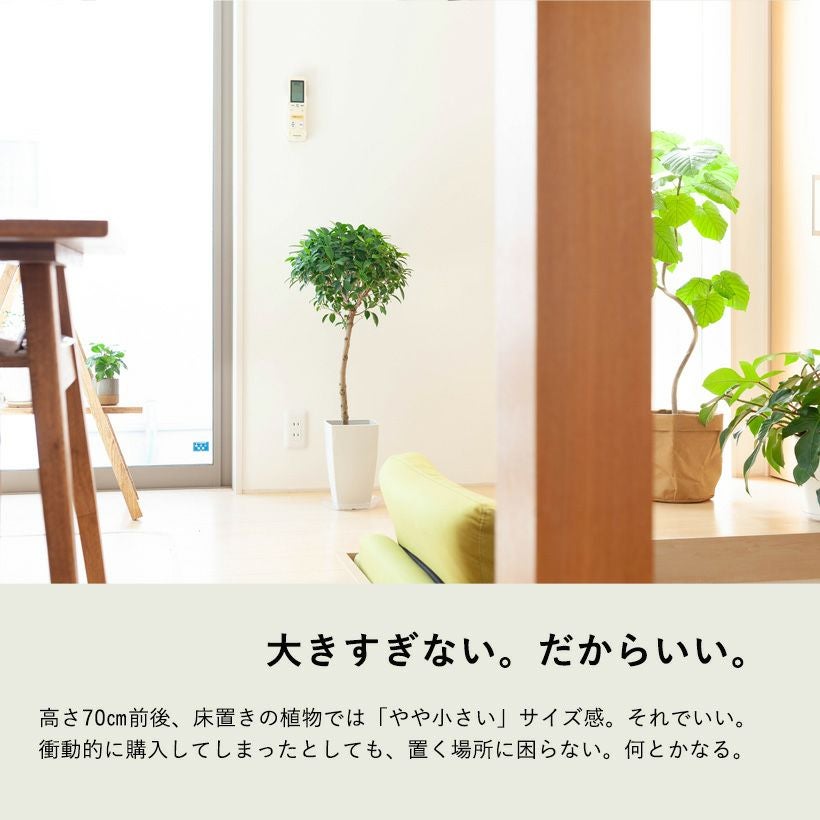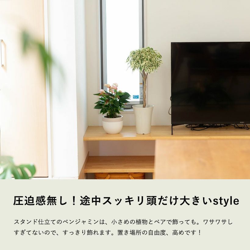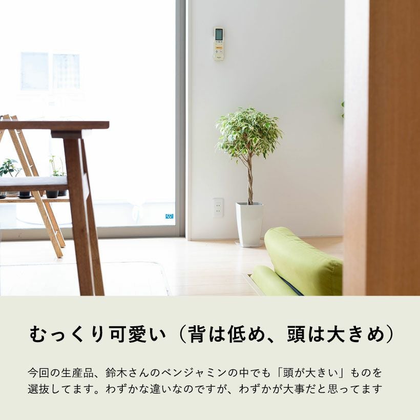 コンパクトに楽しむために品種改良された矮性のベンジャミンです。樹形がコンパクトなので、置き場所に困らず、色んな場所で楽しめる植物です。
