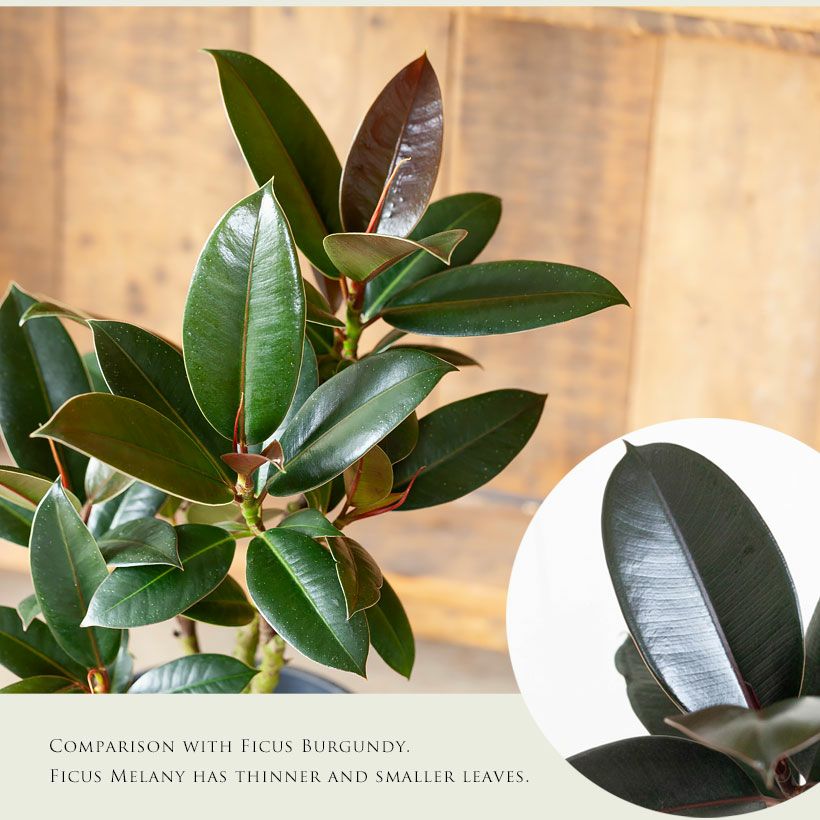 メラニーは、シックな色合いの葉が美しい品種です。厚みがあり、艶のある黒っぽい葉は、飾ったお部屋をモダンな雰囲気にしてくれます。