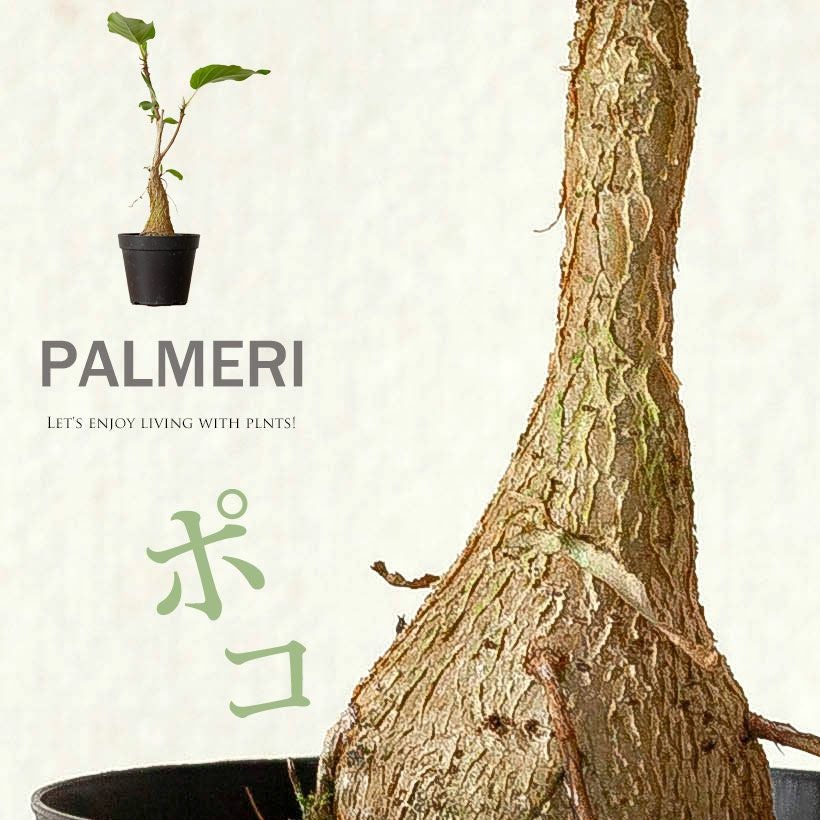 パルメリーの特徴は「株元」。 英名では"ROCK FIG"(岩イチジク)と呼ばれ、峡谷の岩場などに根を張り自生しています。岩場の崖に張り付いているような「根の力強さ」、その片鱗を感じることができると思います。