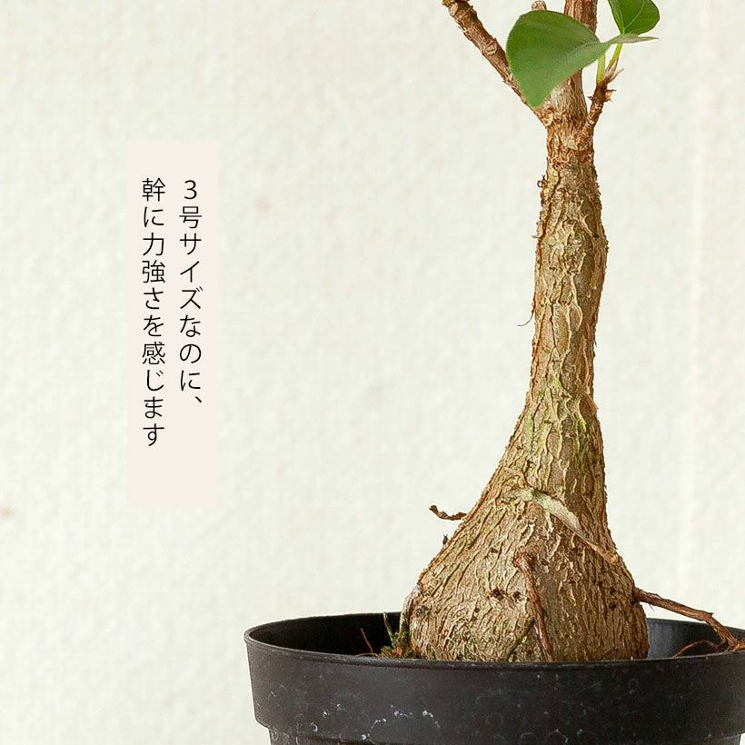 太い幹が盛り上がって見えるのは、「根」の部分。畑で根を太らせ、鉢植えにする際に根を露出させて(根上がり)植えたもの。コーデックス(塊根植物)と言われるものは高価ですが、ガジュマルも同じです!