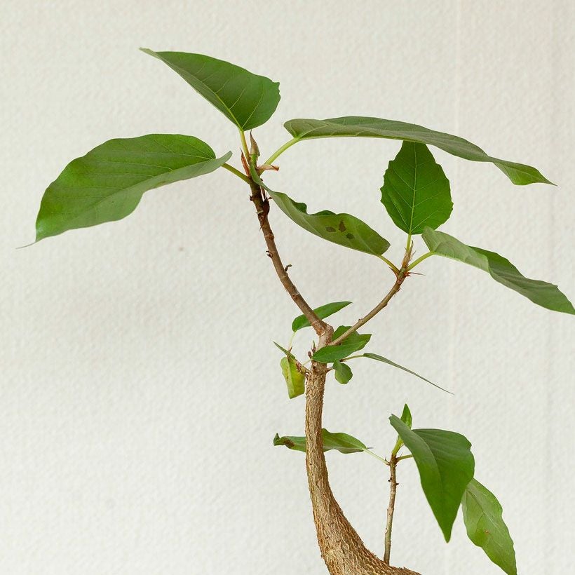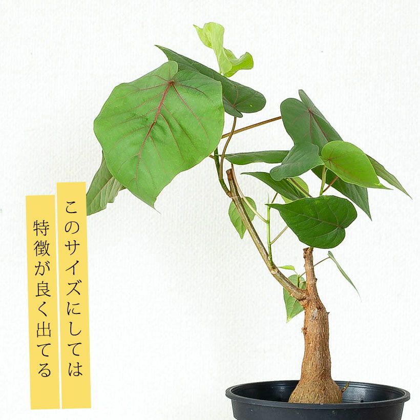 綺麗に赤く染まる表脈。幹から葉柄にかけ、血が通ってるかのようです。株元は、ボトルツリーのようにプックリ膨れ、ボール状に膨らむのも特徴です。