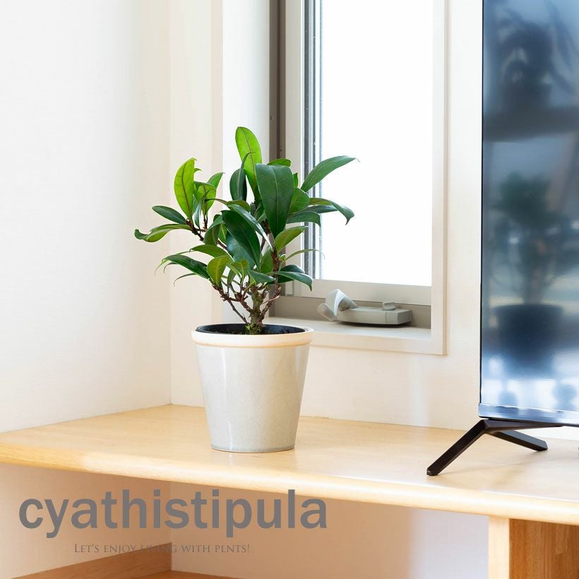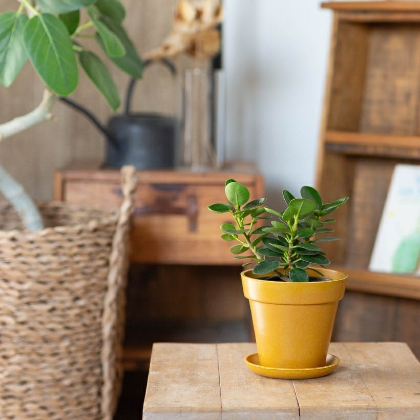 可愛らしい陶器鉢で、長く付き合う つる性ガジュマル(フィカス・シャングリラ)