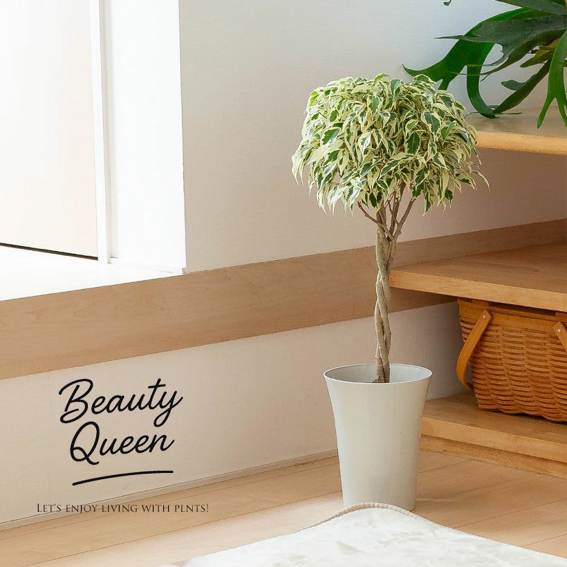 『予約受付中』e-花屋さんは、選りすぐりの観葉植物を全国から集めてきてます。ビューティークィーンは斑入りベンジャミンの中でも際立って美しい品種。入荷は年に2~3回。ページ内「再入荷メール」ボタンをCLICK