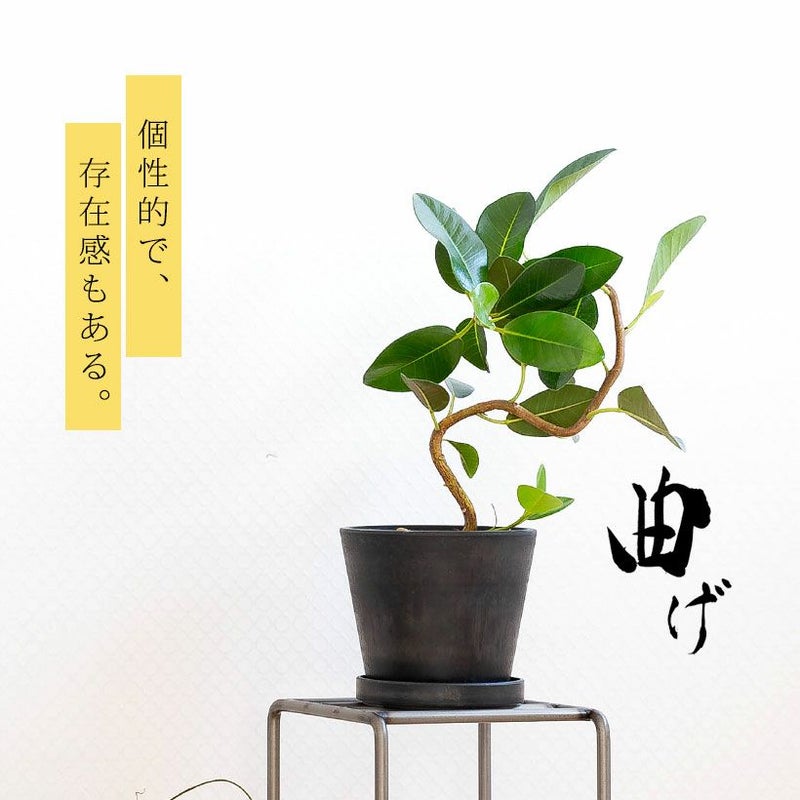 「幹曲がり」の観葉植物はたまに流通してますが、カーブが緩い仕立てが多いです。