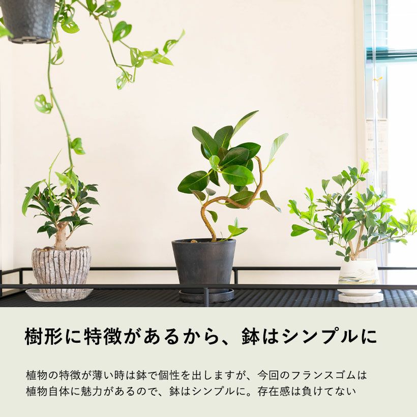 今回紹介するフランスゴムは「木」の観葉で、曲をつけた人気タイプ。