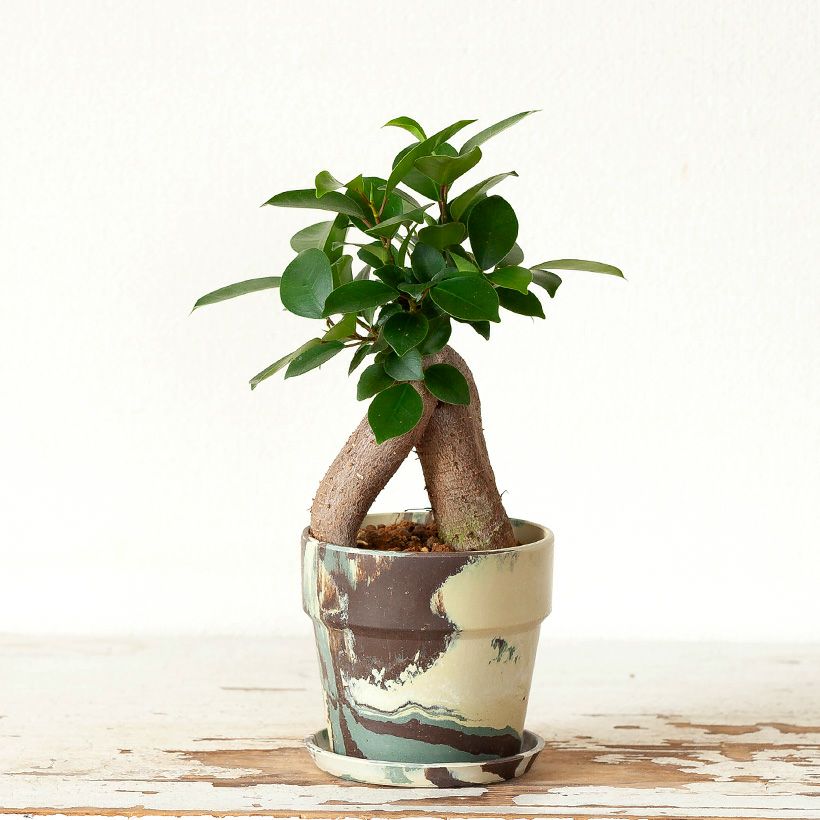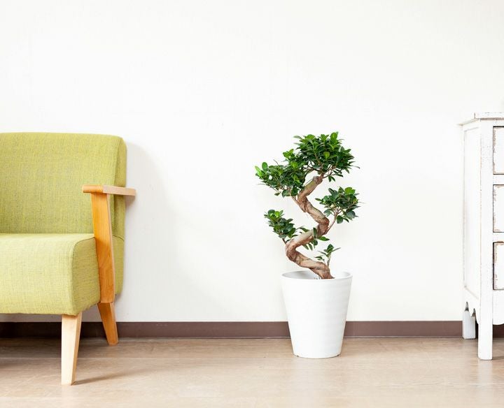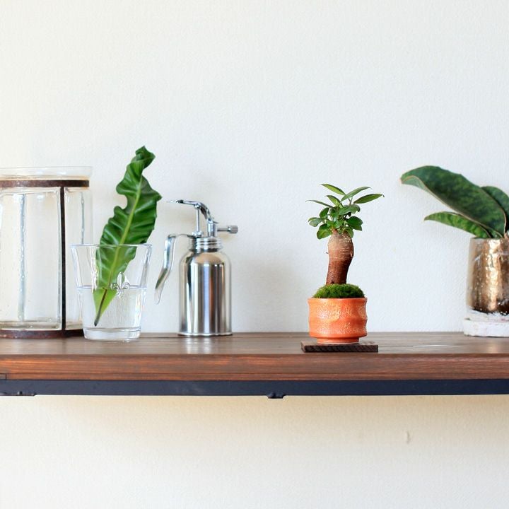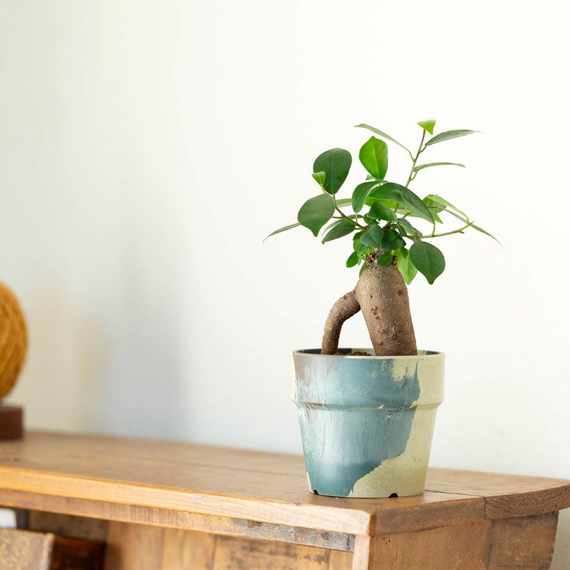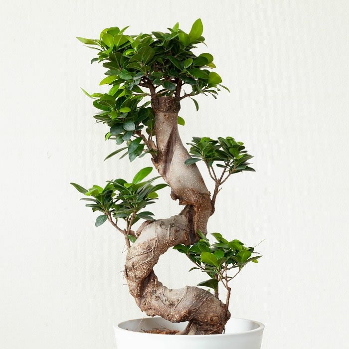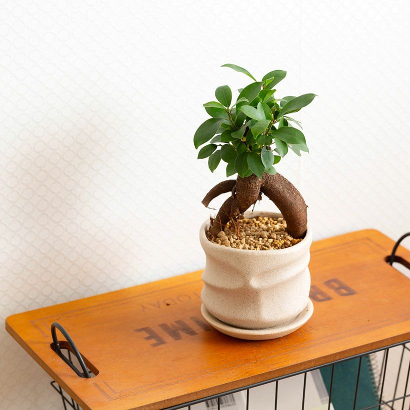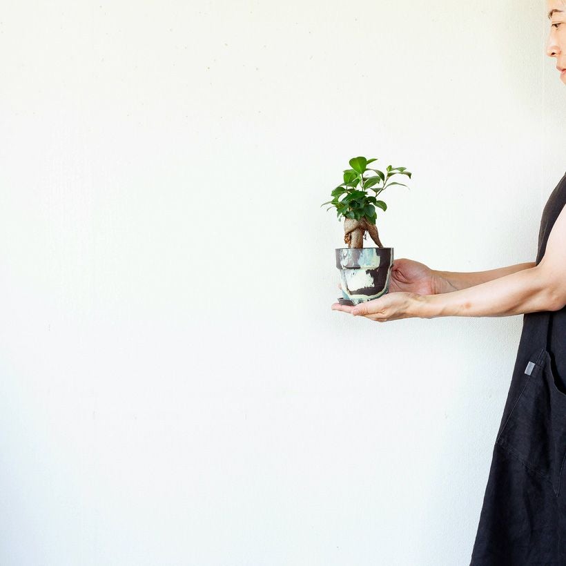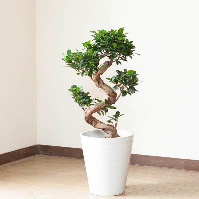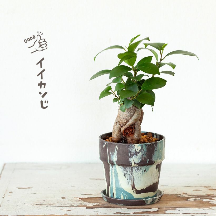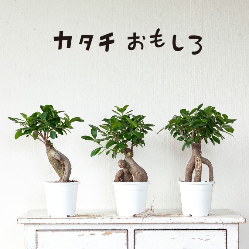 "つる性ガジュマル"と呼ばれる、フィカス・シャングリラ。ガジュマルの丈夫な特性を活かした、ミニミニガジュマルなどバリエーションは豊富です。