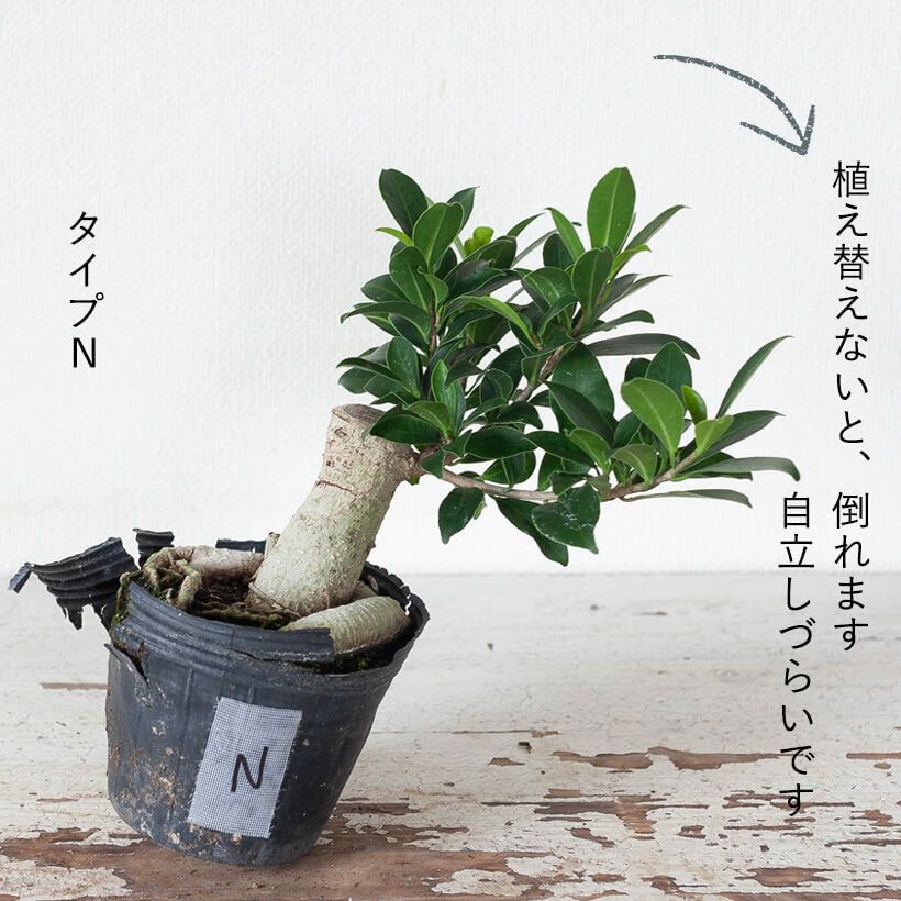 鉢を一回り大きくすれば、成長が早まります。ただ人参ガジュマルタイプは、その幹(イモ)が伸びていく訳でないので、ご注意を。