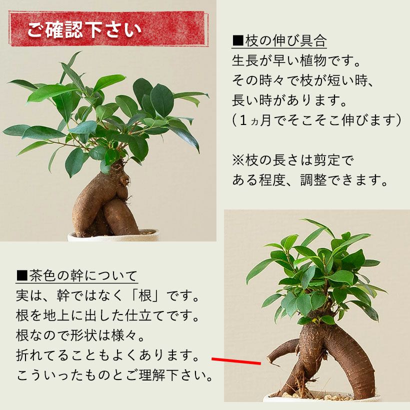 他にも、「コンパクトな樹形を維持しやすい」接ぎ木のガジュマル。