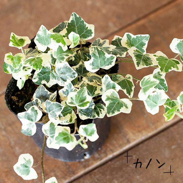 葉が小さい、とっても可愛らしいアイビー「カノン」。斑の入り方が何パターンもある面白い品種で、寄せ植えとかにすると可愛さがより引き立ちます。