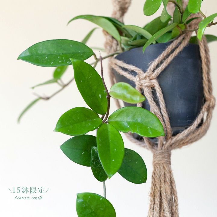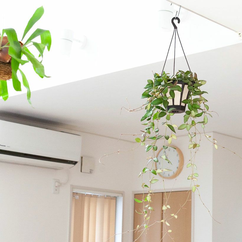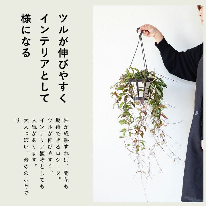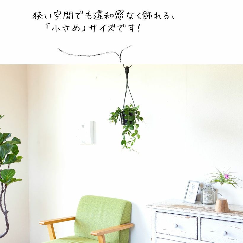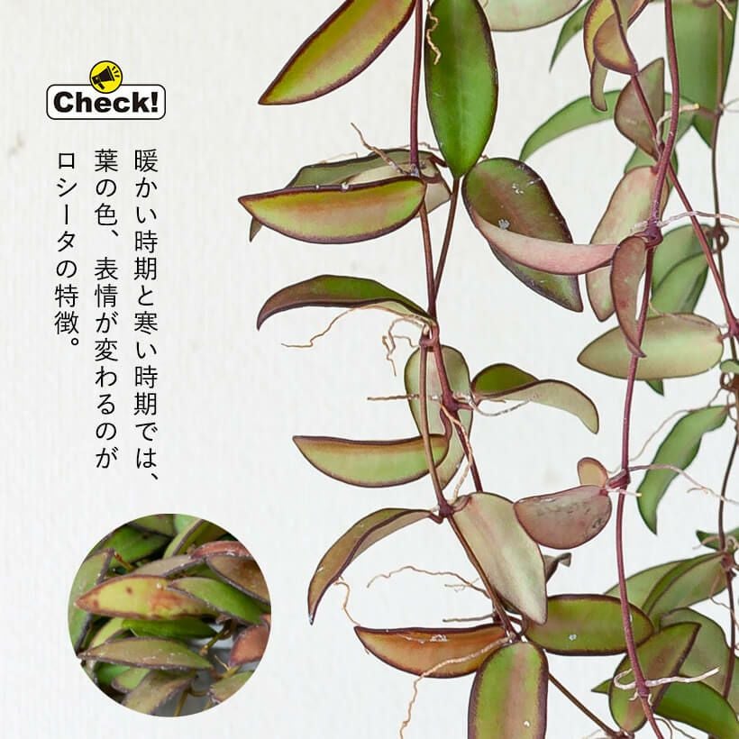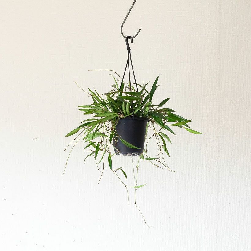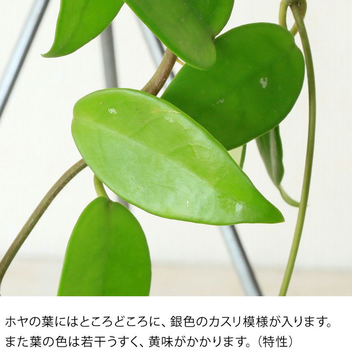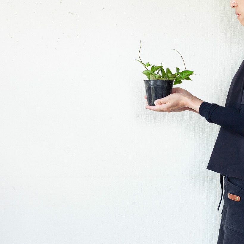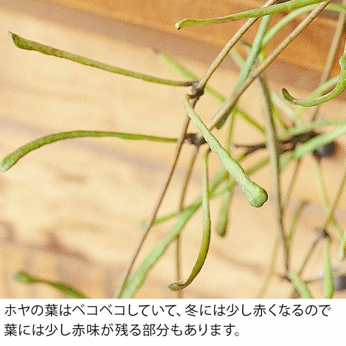 細い短冊みたいな、面白い葉をしたホヤ。ツルが伸びやすい品種で、天井から吊るすと素敵。インテリア観葉植物として、人気が高い品種です!