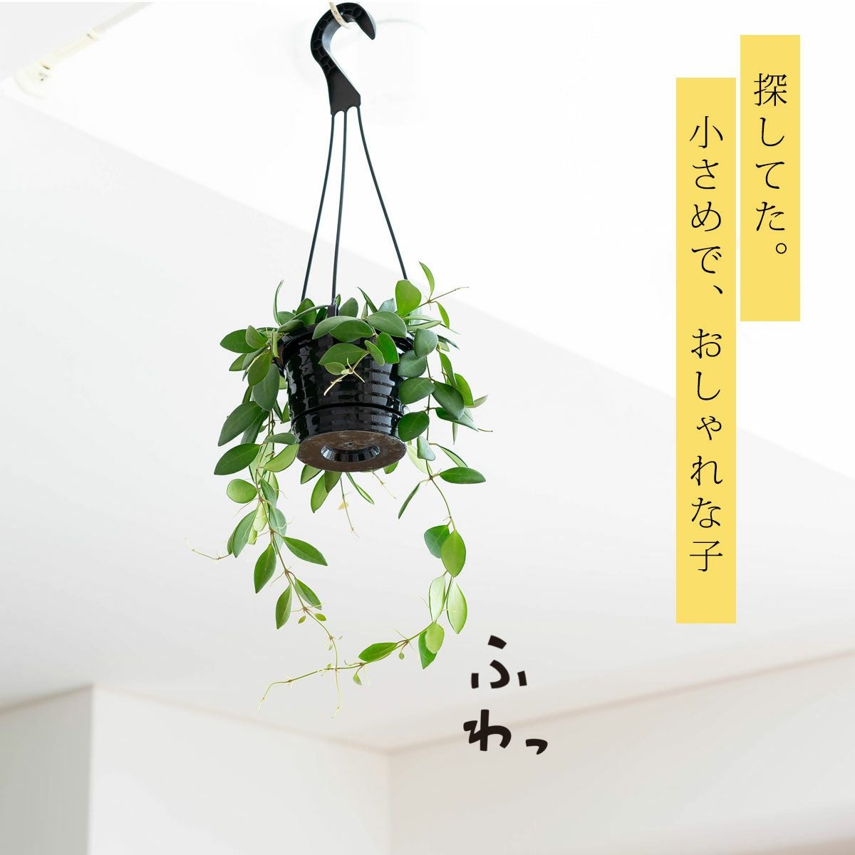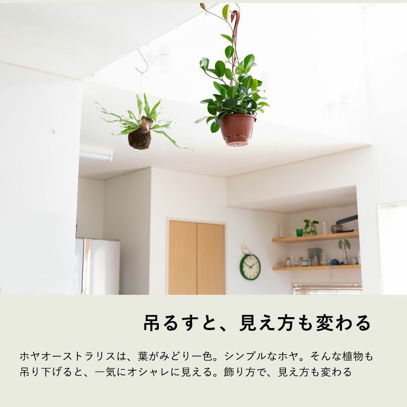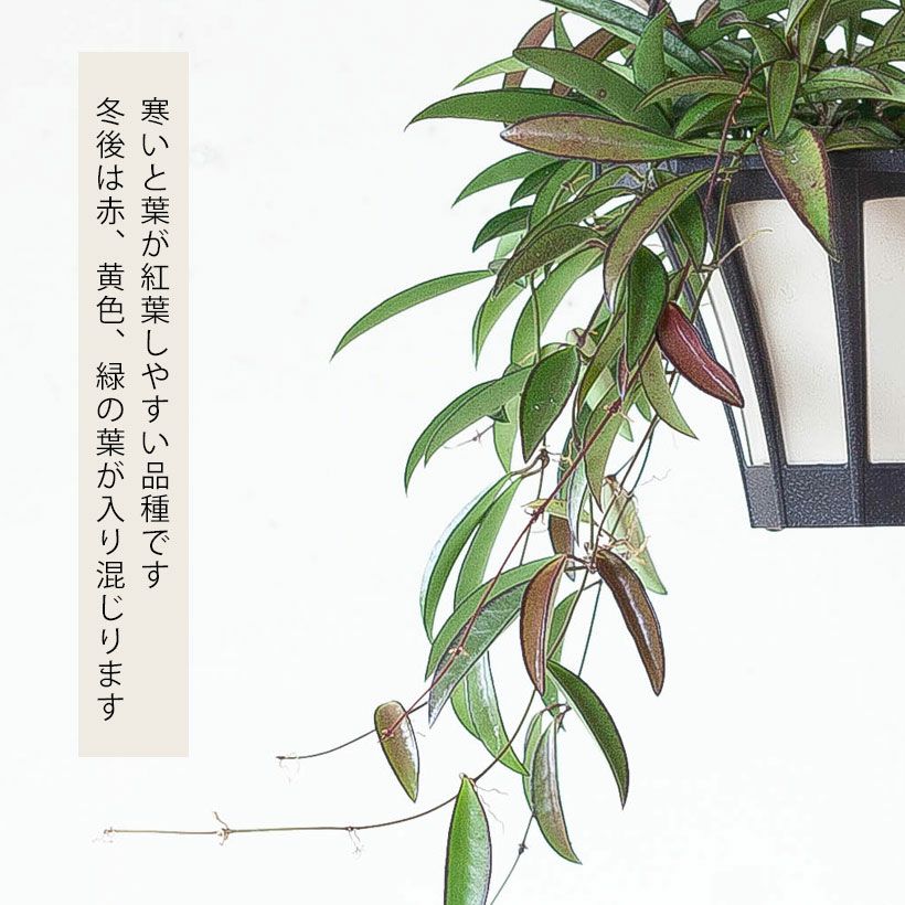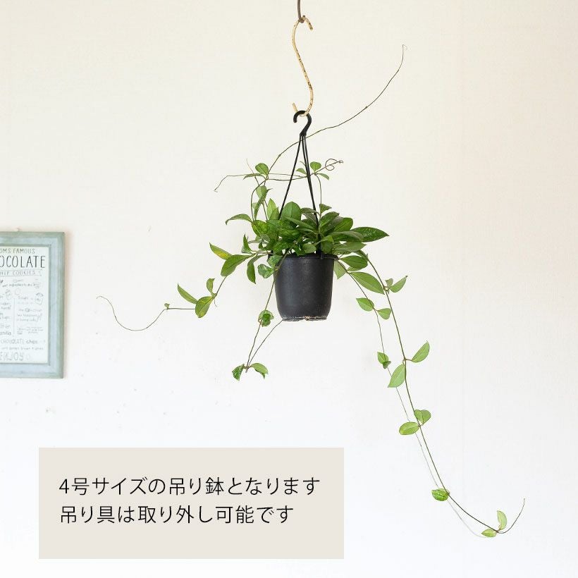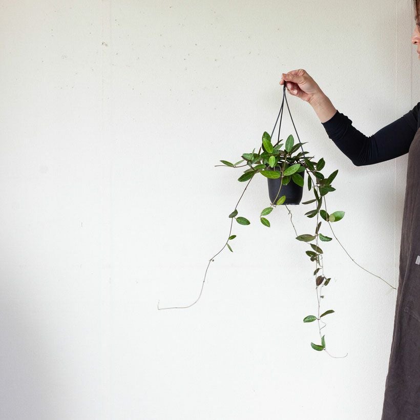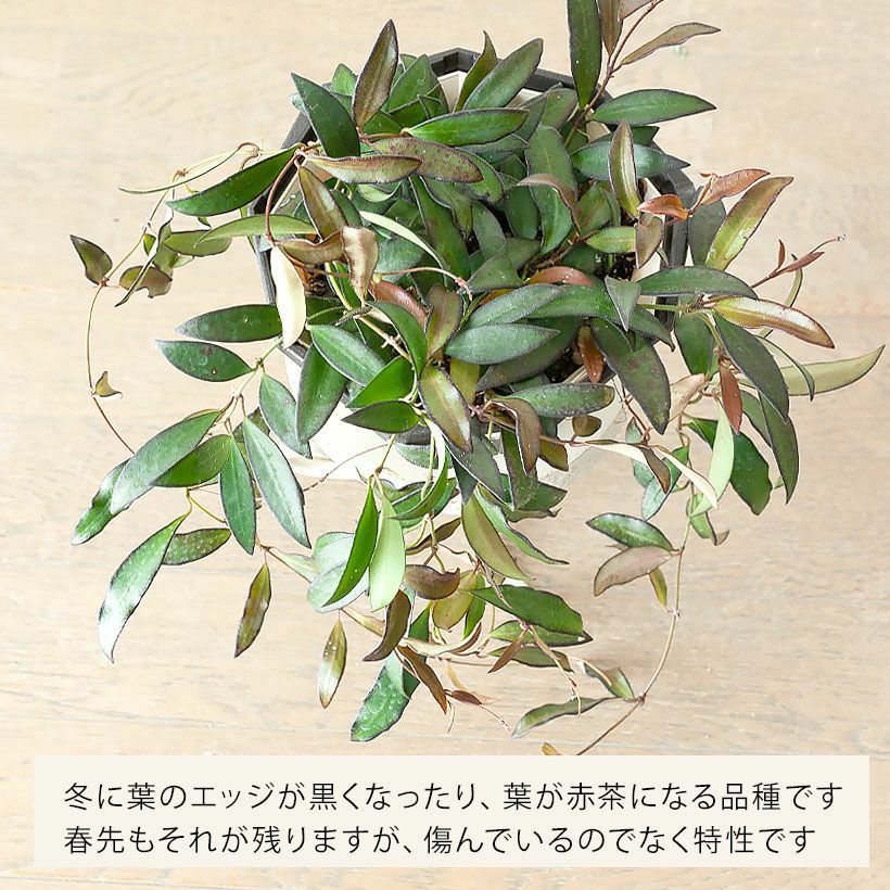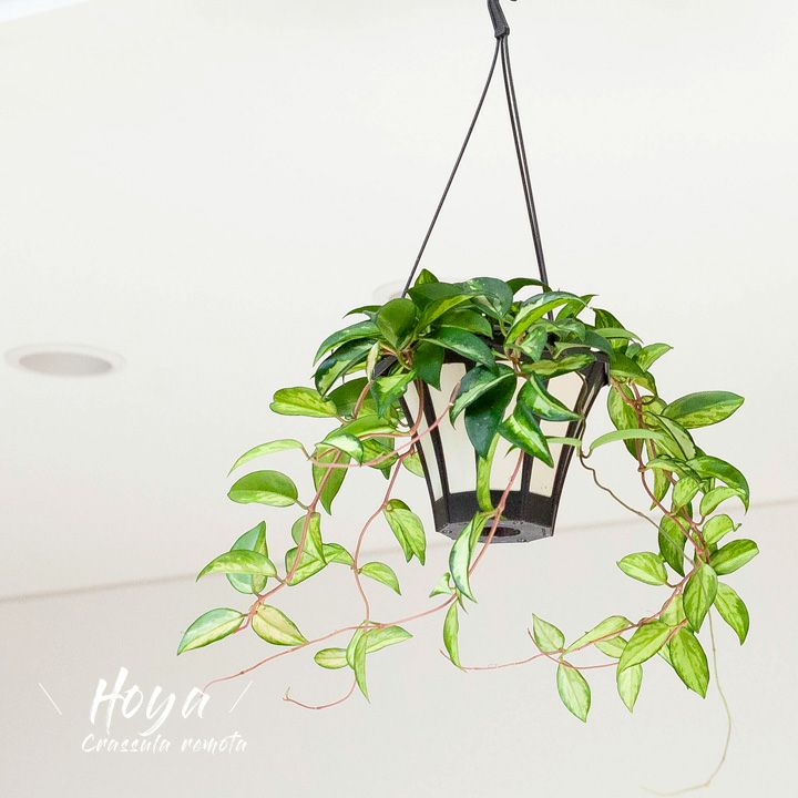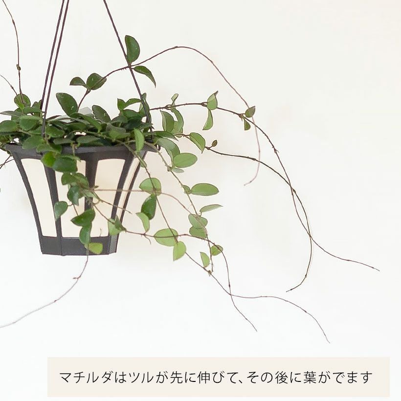 細い短冊みたいな、面白い葉をしたホヤ。ツルが伸びやすい品種で、天井から吊るすと素敵。インテリア観葉植物として、人気が高い品種です!