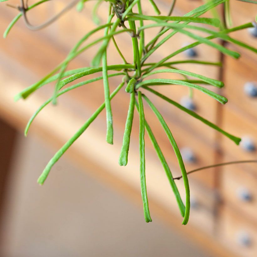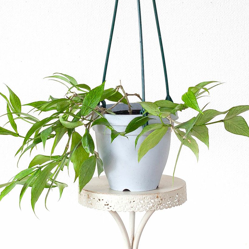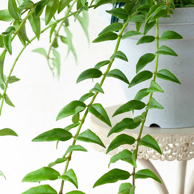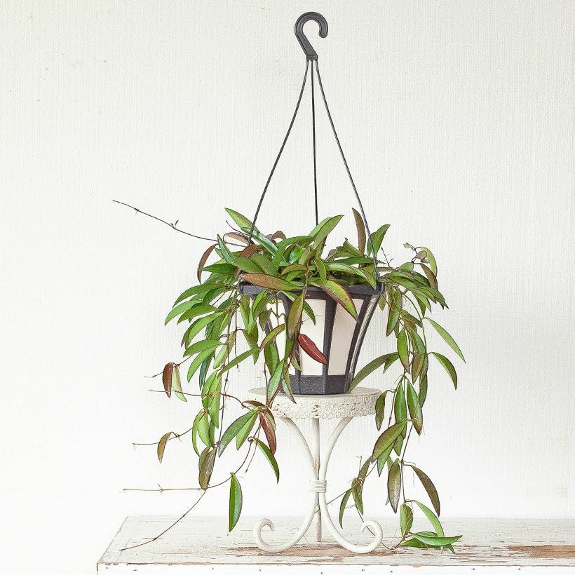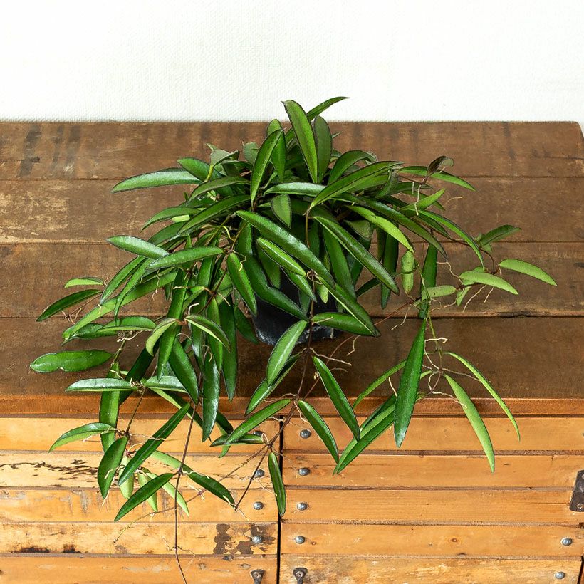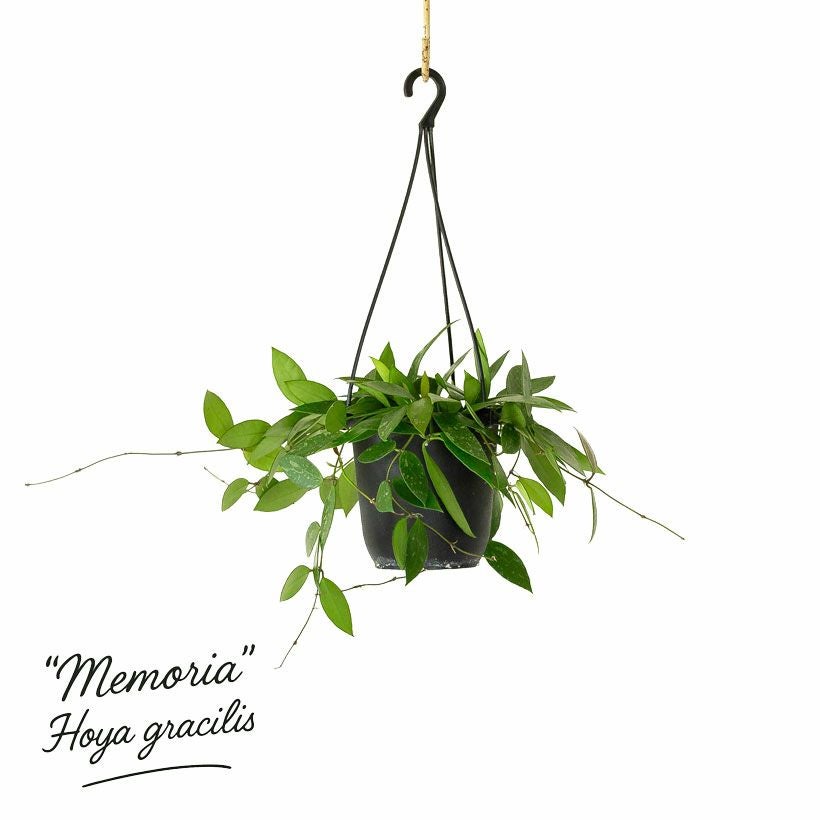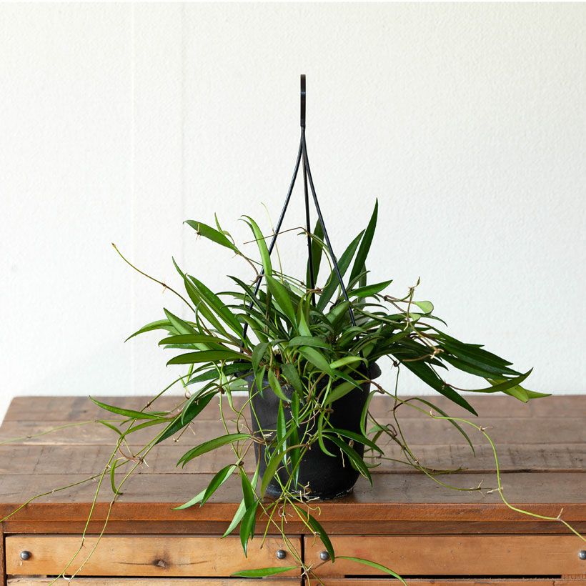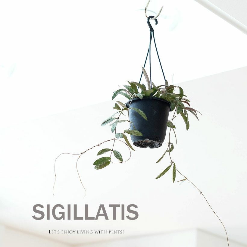 細い短冊みたいな、面白い葉をしたホヤ。ツルが伸びやすい品種で、天井から吊るすと素敵。インテリア観葉植物として、人気が高い品種です!
