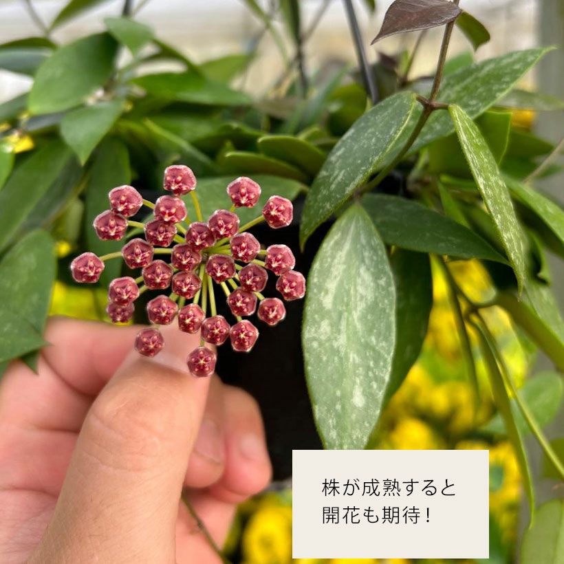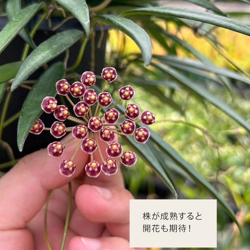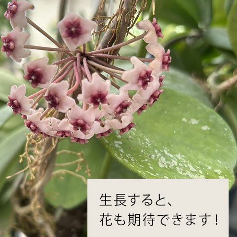 他のホヤと比べると、葉はややこぶり。株が成熟すると、ピンク~赤色の花も期待できます!