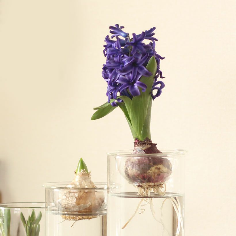 冷蔵庫など涼しい場所で数週間、球根を保管し(低温処理)それから花瓶にセットします。 |