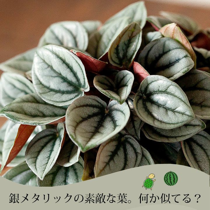 スイカに似てることから「スイカペペロミア」と呼ばれる子。甲羅のようにゴツゴツしてて、メタリックに光る男前。。